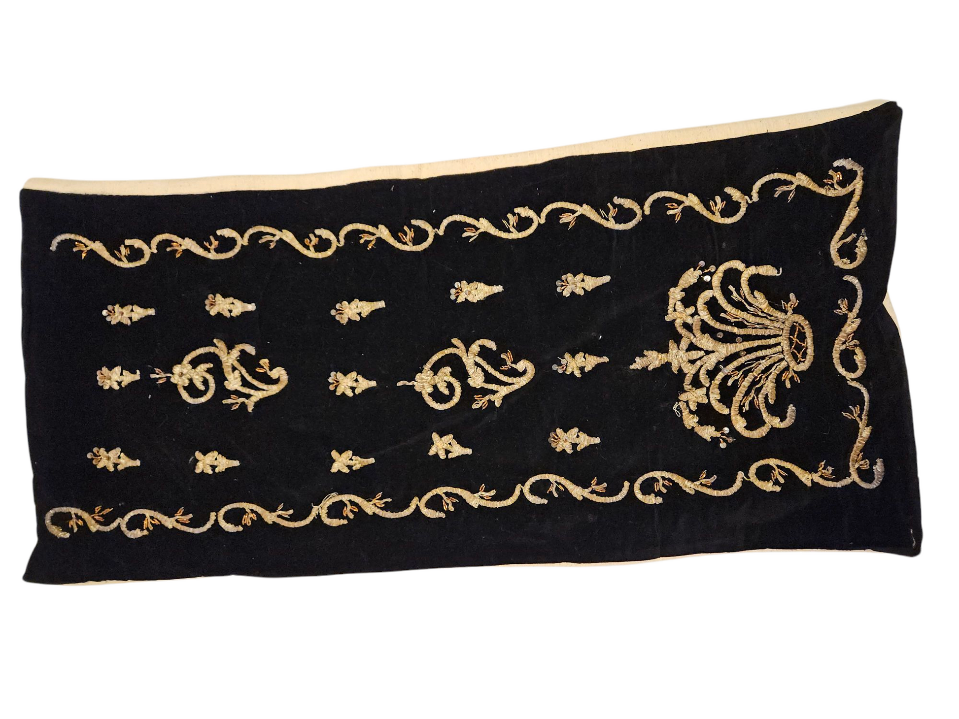 yatay uzun kadife yastık. arkası doğal dokuma. uzunluk: 44cm genişlik: 80cm